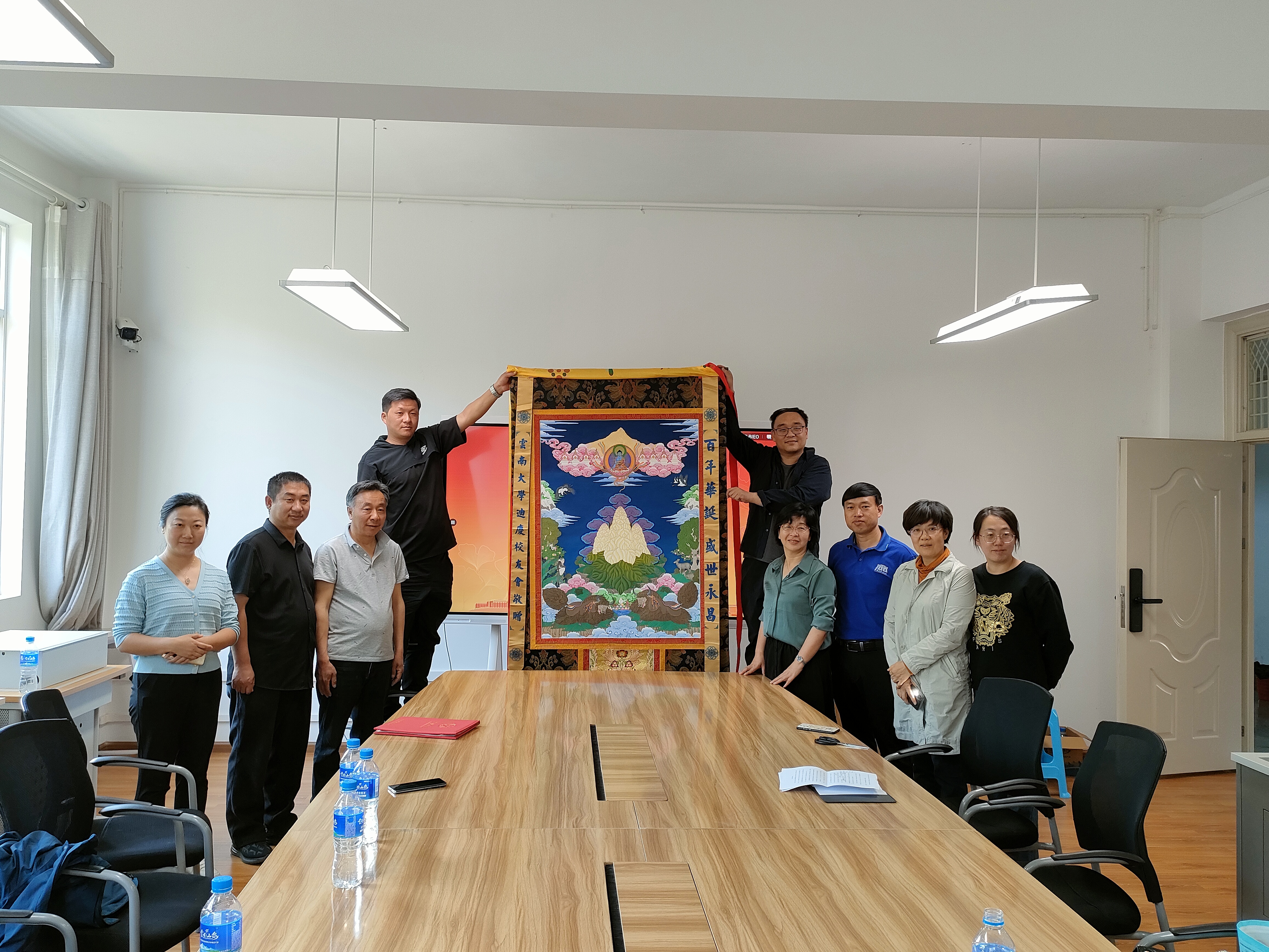313会议室举行。迪庆云南大学校友会向云南大学人类学博物馆捐赠了独具藏族文化特色的卷轴画——唐卡。迪庆州云南大学校友会会长方振东先生及部分校友,云南大学教育基金会/校友总会姬乃建副秘书长、事业发展部牛阁部长,云南大学民族学与社会学黄播平台