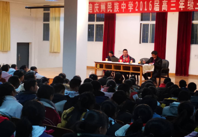在迪庆州民族中学的精心组织下,由民中和校长主持,该校高三年级学生同学参加了本次招生宣传宣讲会。